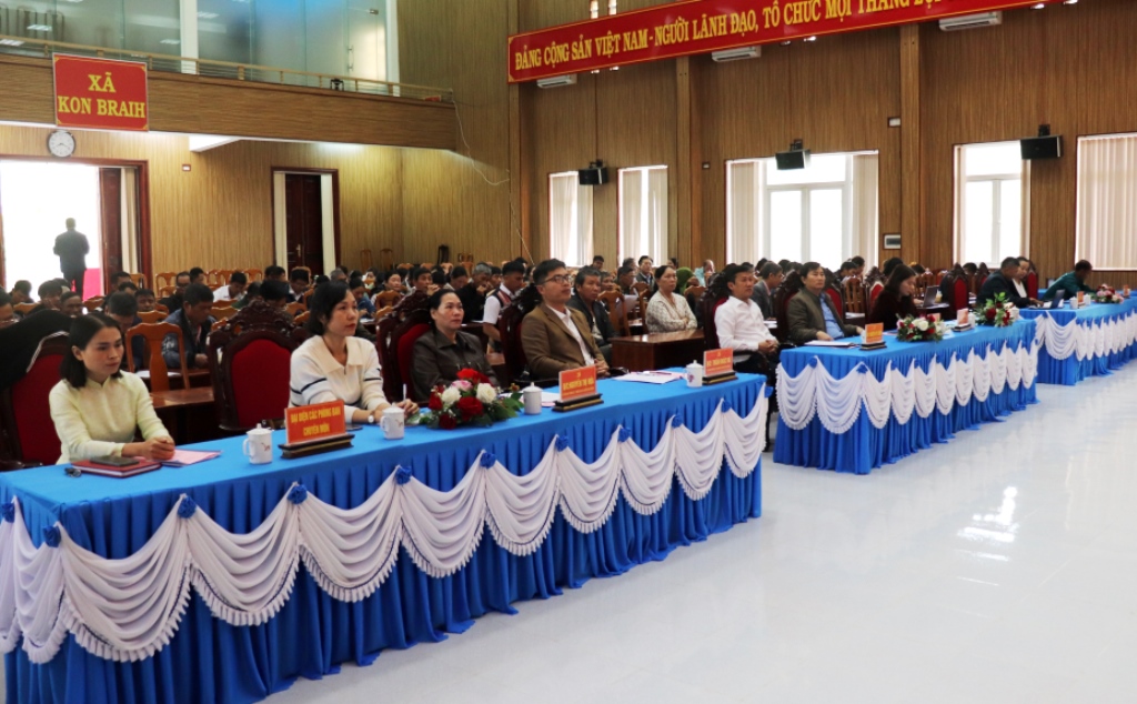 Phát biểu chỉ đạo tại Hội nghị đồng chí Phó Bí thư Thường trực Đảng ủy xã ghi nhận, biểu dương những đóng góp thiết thực của già làng, trưởng thôn, người có uy tín trong sự phát triển của xã. Đồng thời, nhấn mạnh xã Kon Braih sẽ tiếp tục quan tâm, triển khai hiệu quả chính sách dân tộc, đẩy mạnh ứng dụng công nghệ thông tin, chuyển giao khoa học kỹ thuật, giải quyết việc làm, đảm bảo an sinh xã hội, góp phần giảm nghèo bền vững và nâng cao đời sống vật chất, tinh thần vùng dân tộc thiểu số. Đồng thời, đề nghị đội ngũ người uy tín, già làng, trưởng thôn, người tiêu biểu trong vùng đồng bào dân tộc thiểu số tiếp tục phát huy vai trò nòng cốt trong việc củng cố khối đại đoàn kết toàn dân, cảnh giác trước mọi âm mưu, lợi dụng vấn đề dân tộc để chống phá, chia rẽ khối đại đoàn kết toàn dân tộc; xây dựng đời sống văn hóa, giữ gìn bản sắc văn hóa dân tộc, xóa bỏ các hủ tục lạc hậu, mê tín dị đoan, xây dựng xóm bản vững mạnh về chính trị, kinh tế và văn hóa.
