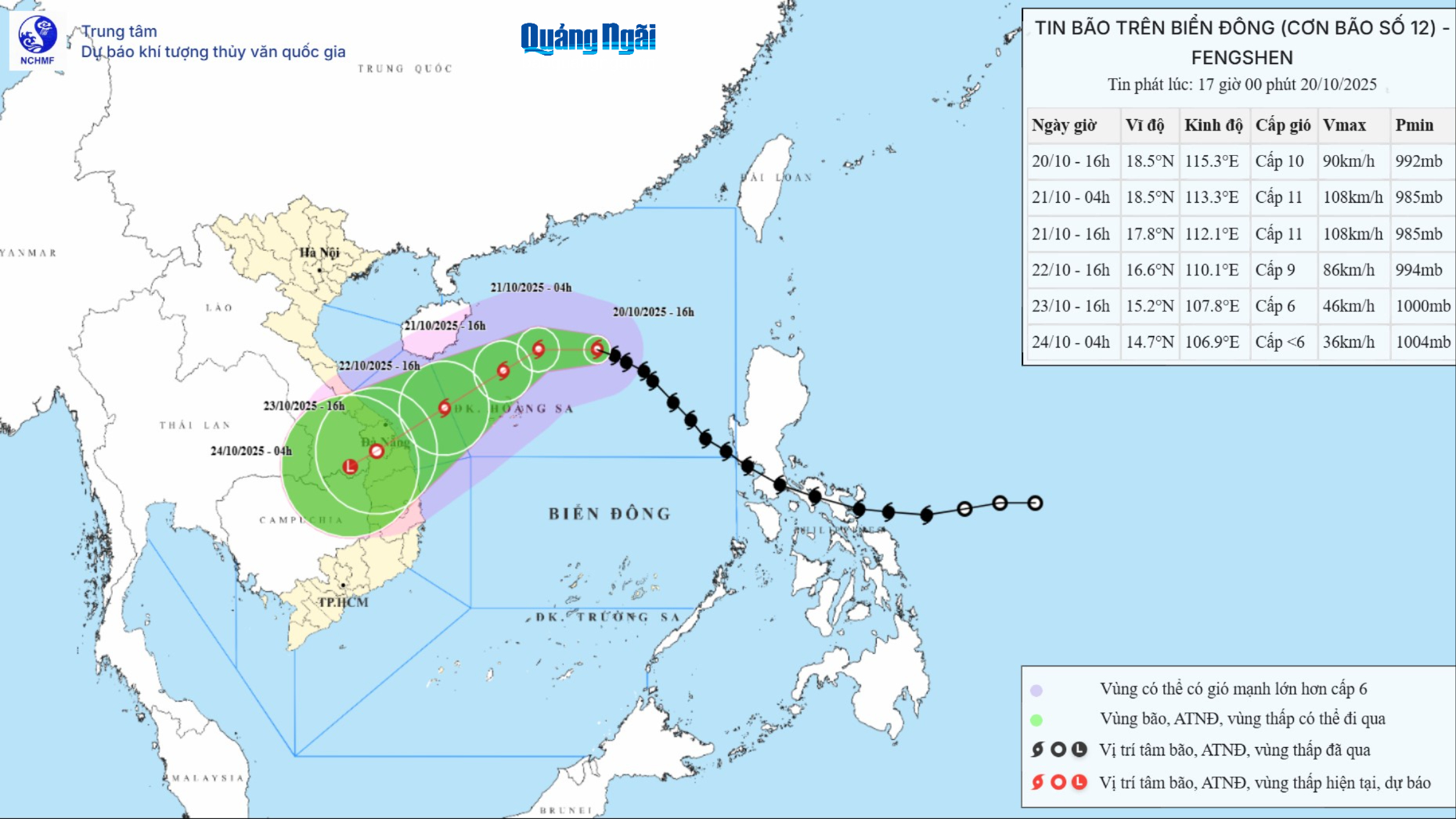 (Baoquangngai.vn)- Chủ tịch UBND tỉnh Nguyễn Hoàng Giang vừa ký công điện số 05/CĐ-UBND ngày 20/10/2025 yêu cầu tập trung ứng phó bão số 12 và mưa lớn gây nguy cơ ngập lụt, sạt lở đất, lũ quét.