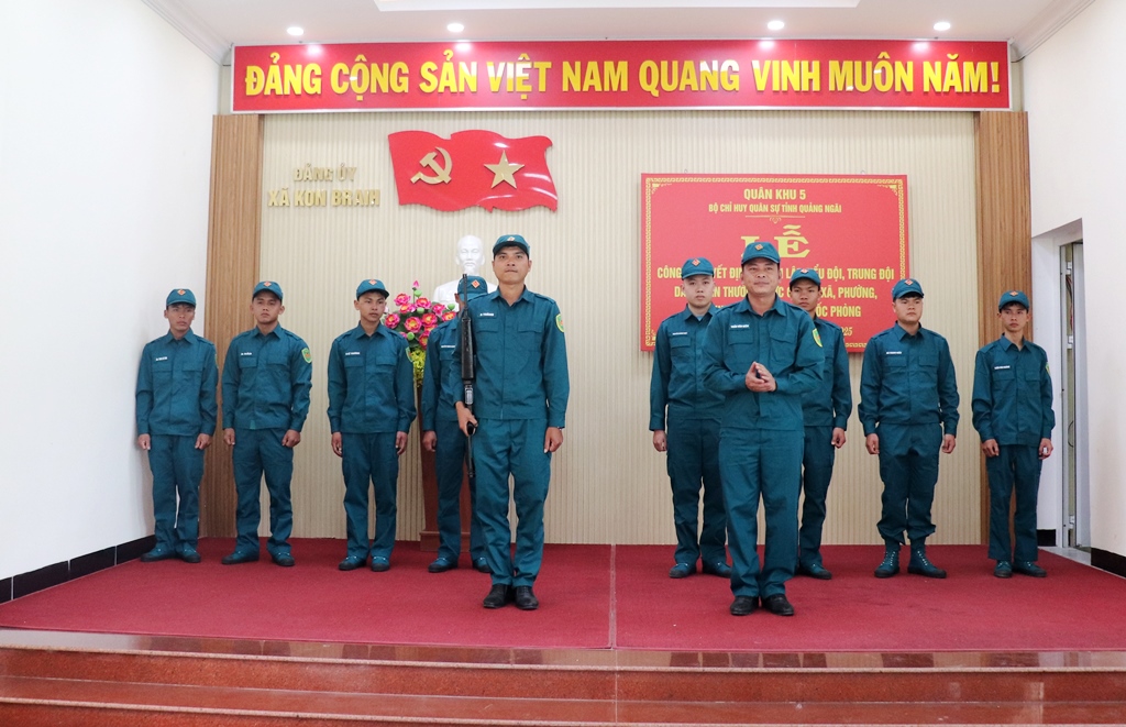 Theo đó, Tiểu đội Dân quân thường trực xã Kon Braih thành lập được bảo đảm đầy đủ các chế độ chính sách theo quy định của Luật Dân quân tự vệ và pháp luật hiện hành. Ngay sau khi công bố quyết định thành lập, Tiểu đội Dân quân thường trực sẽ nhanh chóng ổn định tổ chức, sẵn sàng thực hiện nhiệm vụ, nhất là trong phối hợp với các lực lượng bảo đảm an ninh chính trị, trật tự an toàn xã hội tại địa phương.