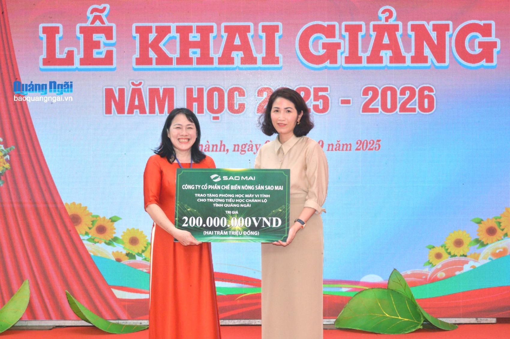 Công ty CP Chế biến Nông sản Sao Mai tặng cho trường 20 bộ máy tính, trị giá 200 triệu đồng cho Trường Tiểu học Chánh Lộ.