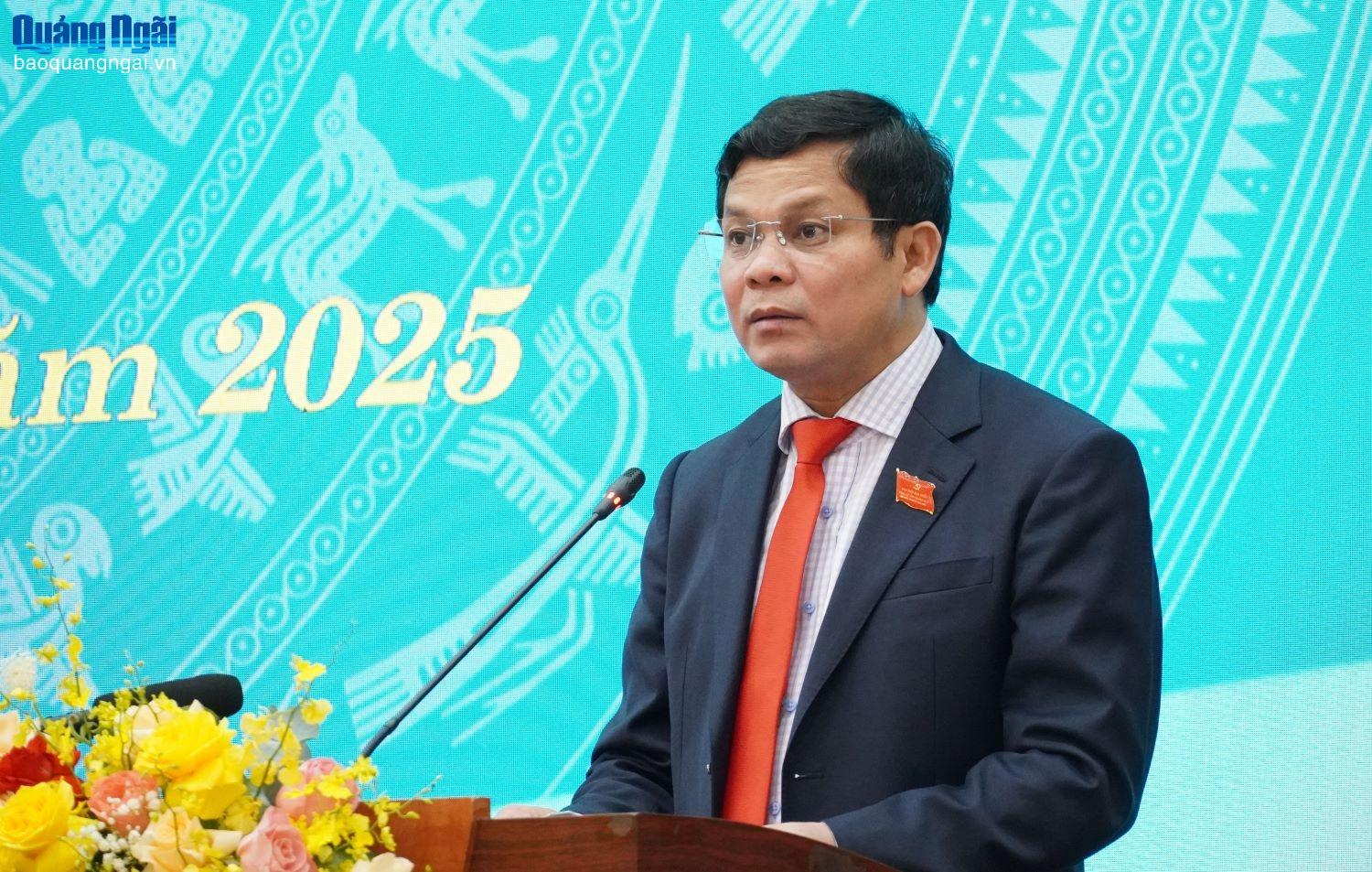 Tại kỳ họp, Phó Bí thư Tỉnh ủy, Chủ tịch UBND tỉnh Nguyễn Hoàng Giang trình bày Tờ trình về việc giới thiệu bầu bổ sung hai Phó Chủ tịch UBND tỉnh Quảng Ngãi, nhiệm kỳ 2021 - 2026 đối với các đồng chí: Nguyễn Công Hoàng - Tỉnh ủy viên, Bí thư Đảng ủy, Chủ tịch HĐND xã Ba Gia và Đỗ Tâm Hiển - Tỉnh ủy viên, Bí thư Đảng ủy xã Khánh Cường.