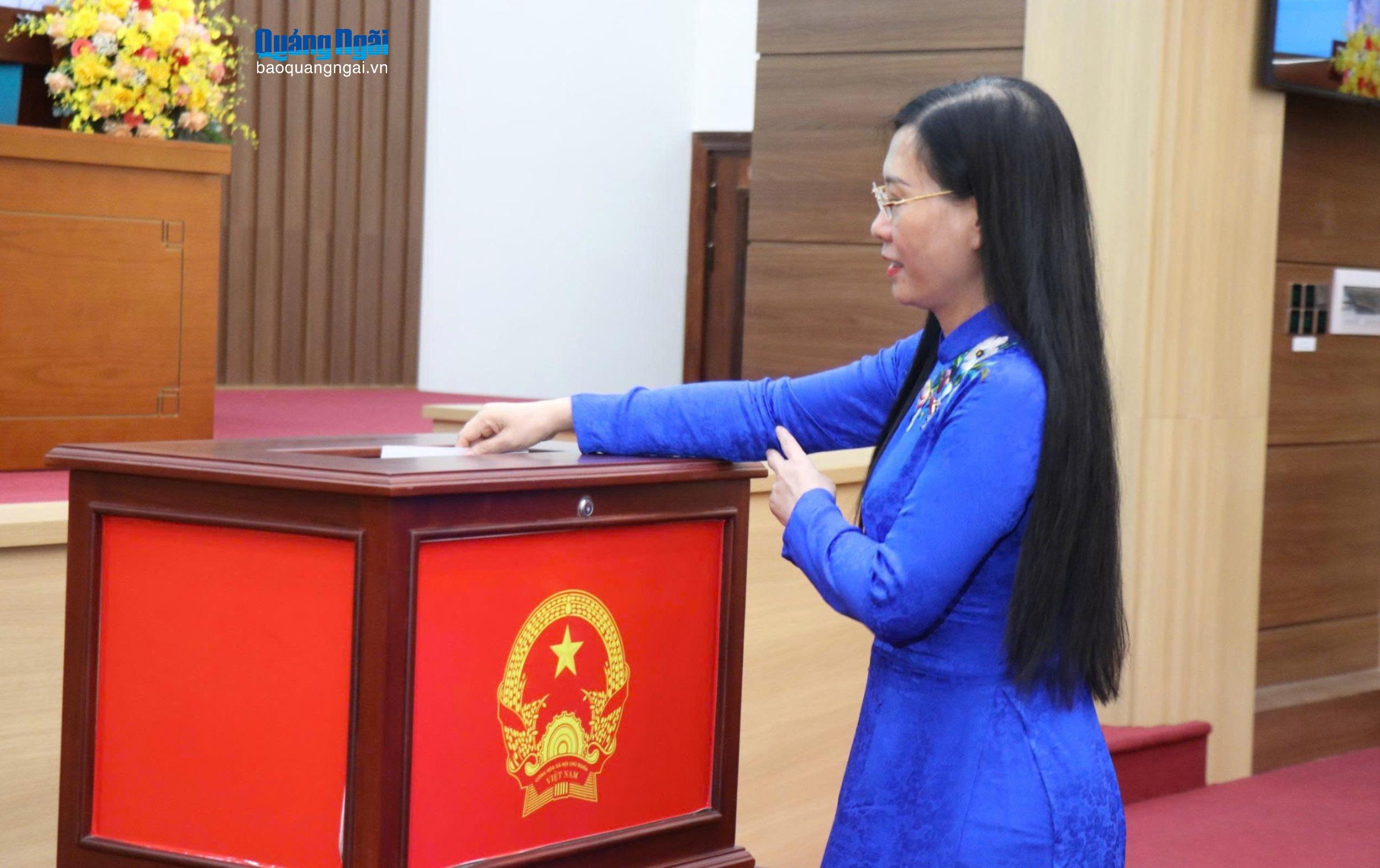 Ủy viên Trung ương Đảng, Bí thư Tỉnh ủy Bùi Thị Quỳnh Vân bỏ phiếu bầu bổ sung hai Phó Chủ tịch UBND tỉnh.