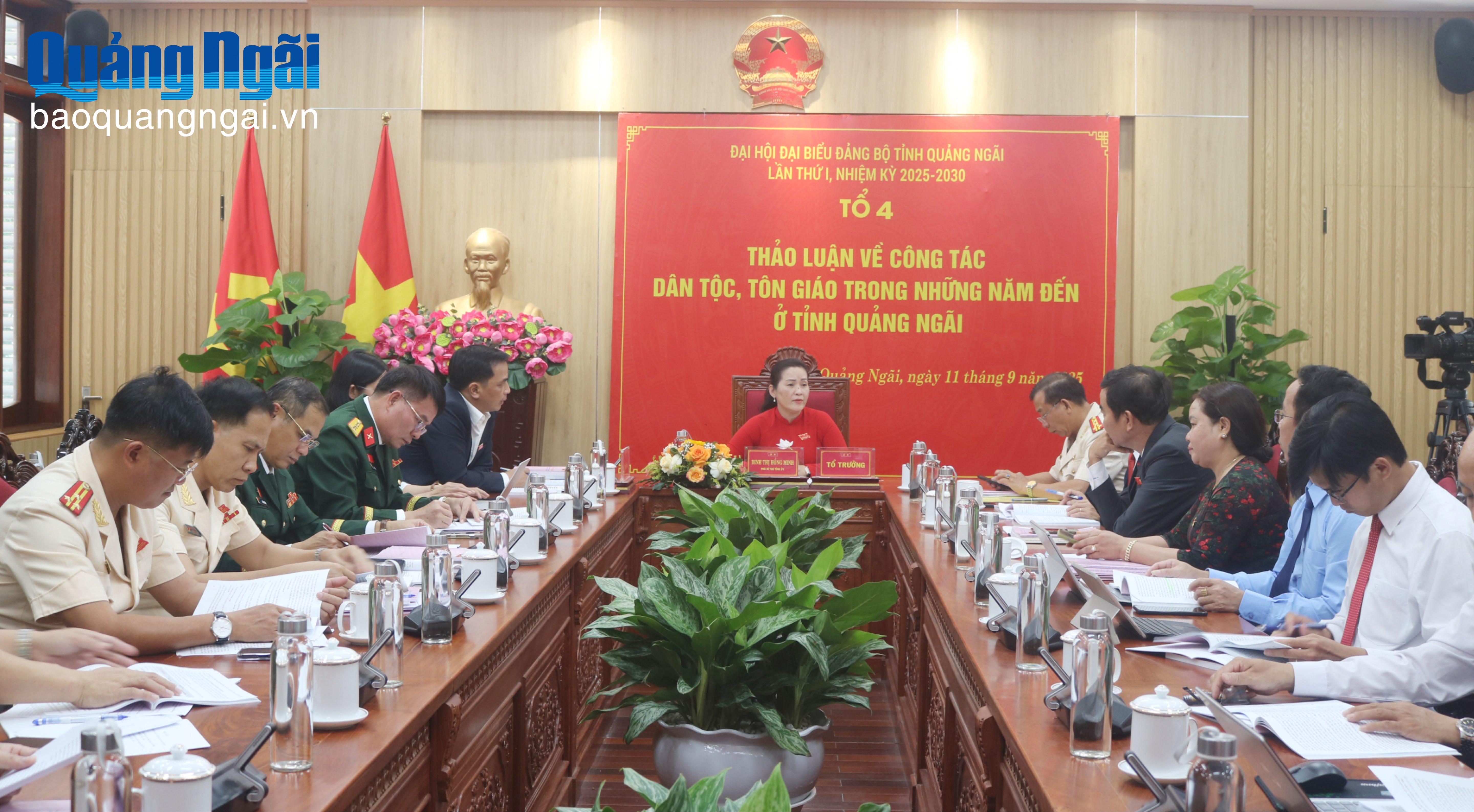 * Tại Tổ số 4 do Phó Bí thư Tỉnh ủy Đinh Thị Hồng Minh làm Tổ trưởng, các đại biểu đã tập trung thảo luận nội dung về công tác dân tộc, tôn giáo trong những năm đến ở tỉnh Quảng Ngãi.
