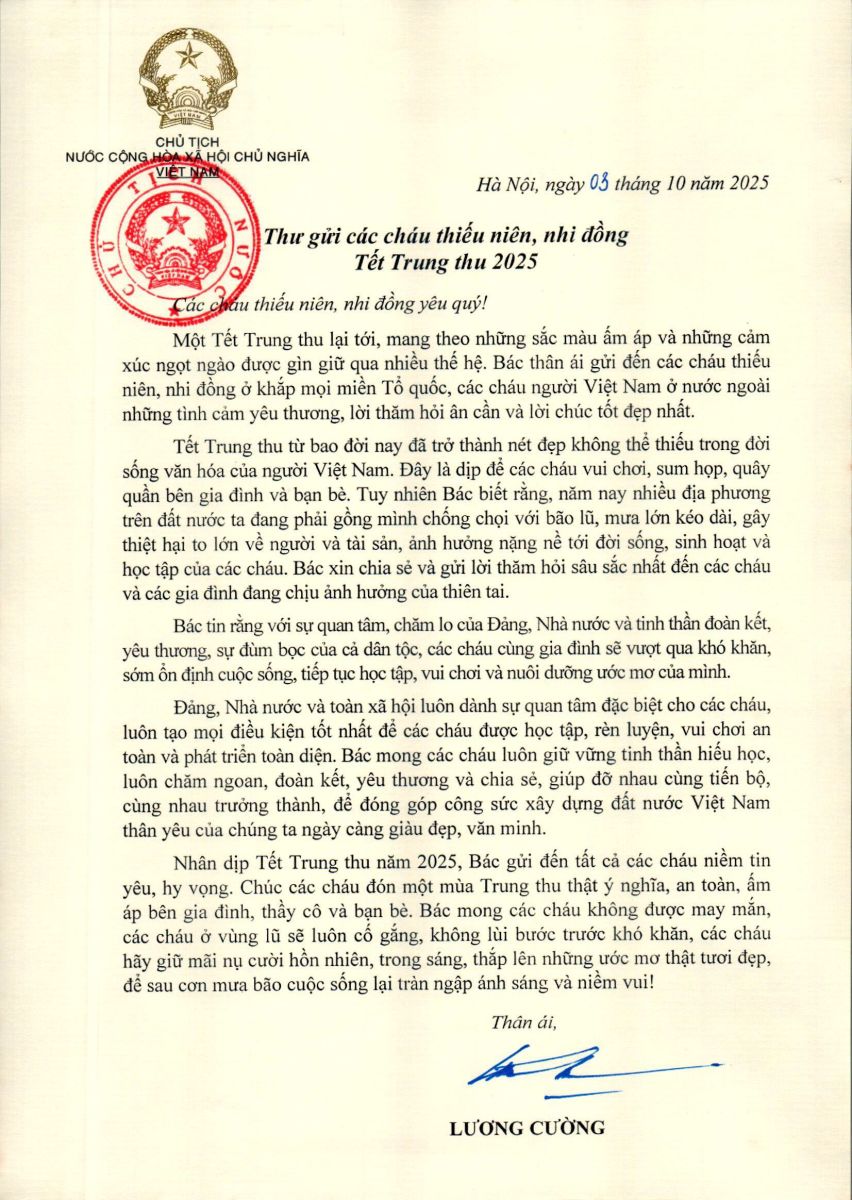 Thứ bảy, 04/10/2025 | 14:07 A- A A+ | THƯ GỬI CÁC CHÁU THIẾU NIÊN, NHI ĐỒNG TẾT TRUNG THU NĂM 2025 Giọng nữ miền Bắc Giọng nam miền Bắc Giọng nữ miền Nam Đọc bài Chia sẻ Lưu
