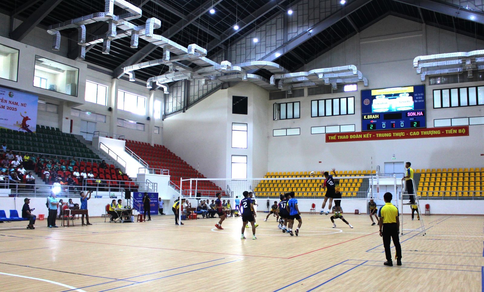 Hai nội dung thi đấu nam, nữ đều tổ chức thi đấu vòng tròn một lượt để tính điểm. Trong trận khai mạc giải vào sáng ngày 7/10 đội bóng chuyền nam xã Kon BRaih gặp đội xã Sơn Hà. Với trình độ chuyên môn cao hơn nên đội Sơn Hà đã thắng đội xã Kon Braih với ty số 3-1. Được biết, mới đây đội Sơn Hà đoạt ngôi vô địch giải bóng chuyền nam tỉnh Quảng Ngãi (cũ) năm 2025.