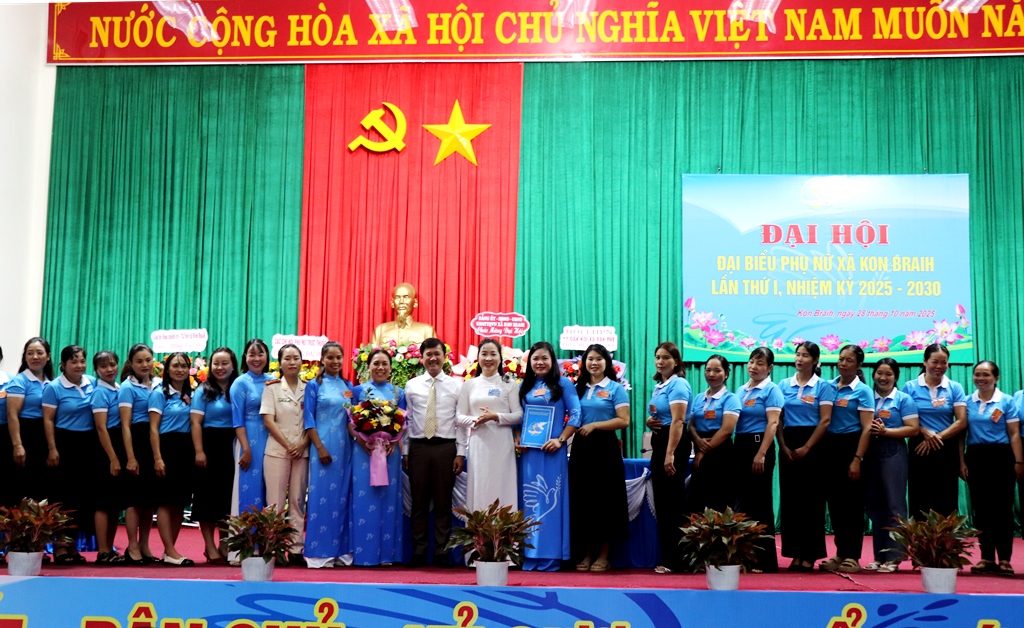 Với tinh thần “Đoàn kết - Dân chủ - Kỷ cương - Đổi mới - Phát triển”, nhiệm kỳ 2025-20230, Đại hội đại biểu Hội phụ nữ xã Kon Braih phấn đấu hàng năm, giúp 05-07 hộ thoát nghèo, thoát cận nghèo đa chiều; xây dựng và duy trì ít nhất 05 mô hình phụ nữ khởi nghiệp; hàng năm có trên 05 hộ gia đình hội viên được hỗ trợ sinh kế, phương tiện làm ăn; đến 2030, phấn đấu 90% hội viên phụ nữ toàn xã sử dụng ngân hàng/ứng dụng thanh toán điện tử; 100% cơ sở Hội thực hiện vận động, hỗ trợ gia đình đạt tiêu chí “Gia đình 5 có, 3 sạch”; phấn đấu bình quân hỗ trợ thêm 20 hộ đạt tiêu chí “Gia đình 5 có, 3 sạch”. 100% chi Hội đăng ký và thực hiện ít nhất 01 công trình/phần việc thiết thực….vv.