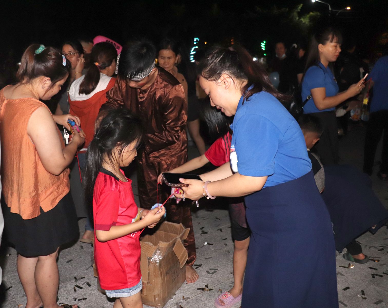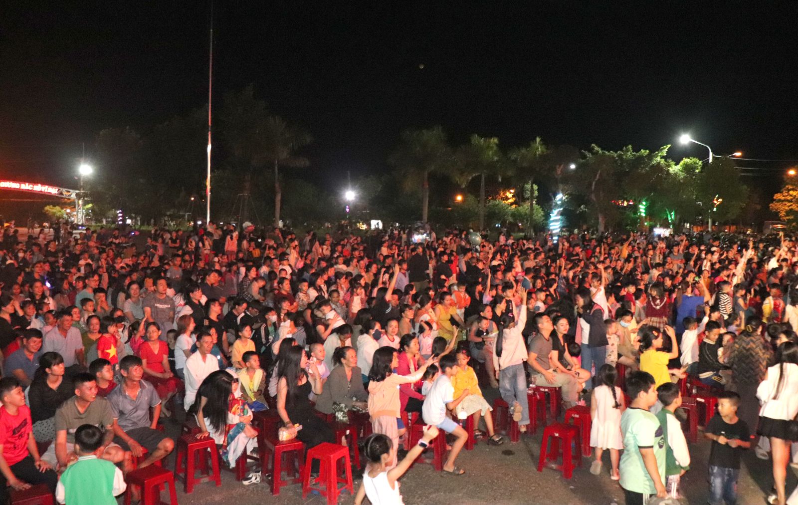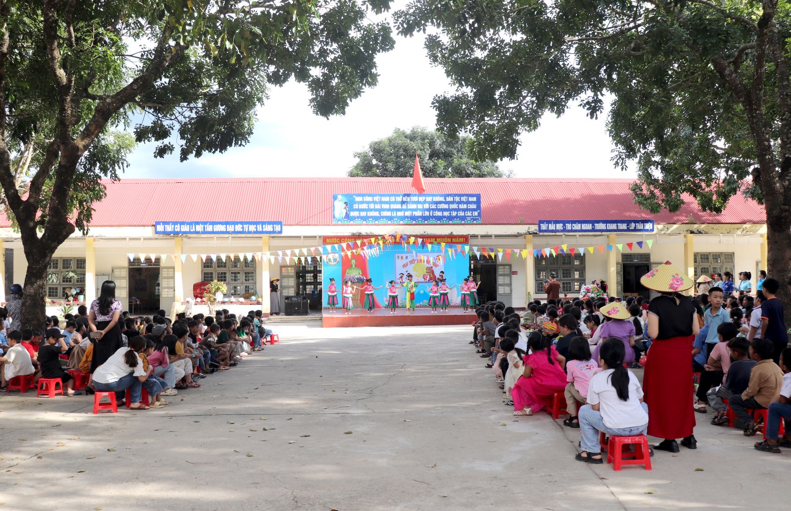 Nhân dân và các em thiếu niên, nhi đồng tham dự chương trình