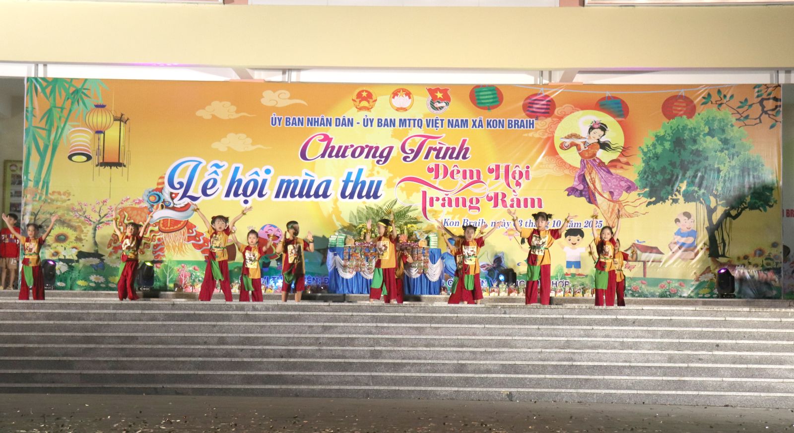 Chương trình Đêm hội trăng rằm với nhiều tiết mục đặc sắc, chọn lọc gồm: Múa Lân sư rồng, tiểu phẩm chú Cuội, chị Hằng cùng các trò chơi dân gian. Đặc biệt trong chương trình, UBND xã Kon Braih tổ chức phát hơn 2 nghìn lồng đèn và phá cỗ Trung thu cho thiếu niên nhi đồng.