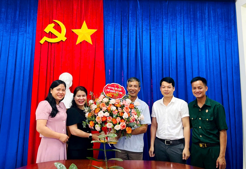 Tặng hoa chúc mừng Hội Nông dân xã nhân dịp kỷ niệm 95 năm ngày thành lập Hội